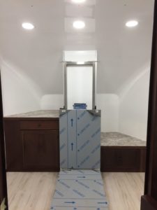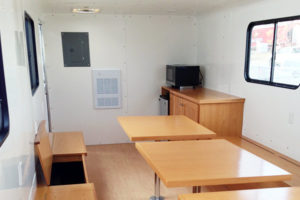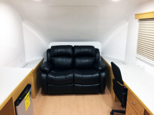 The custom interiors are built in house and there are no limitations on what can be done. We fabricate to the customer’s needs. We build trailers 8’3″ wide and up to 30′ long. Our custom office trailers are unique and come with an impressive list of standard features, all built on the high-tech Shuttle platform: