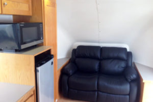 - couch with small storage cabinets on either side